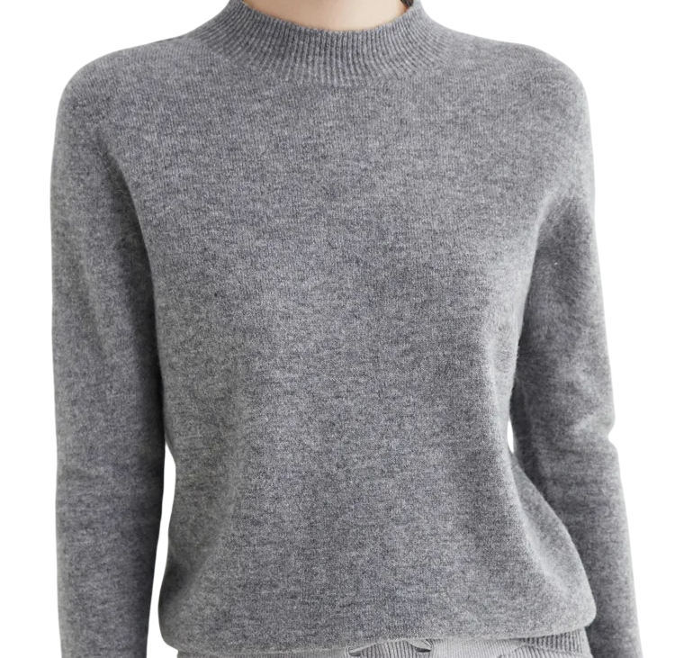 Damsk Tröja i Acetat och Bomull med O-ringning Enfärgad Elegant Tröja med Långa Ärmar Universell Storlek för Vardagsbruk