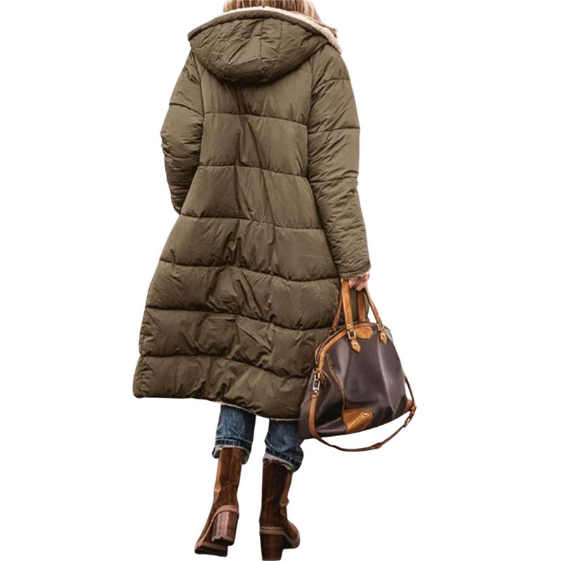 Denna damska vändbara vinterjacka erbjuder en exceptionell kombination av praktisk användning, värme och modern stil. Den är designad som en 2i1-design, vilket gör det möjligt att ändra stil efter aktuellt behov – ena sidan är slät, lämplig för vardagsbruk, medan den andra sidan är täckt med värmande fuskpäls, som ger maximal värme och mysig vinterkomfort. Dragkedjan säkerställer ett fast stängande och enkel påklädning även i kallt väder. Huva ger ett extra skydd mot vind och kyla, vilket du kommer att uppskatta vid vinterpromenader och daglig användning. Jackan är tillverkad av en hållbar kombination av polyester och nylon, vilket gör den stark, behaglig att bära och lämplig för regelbundet bruk under vintern. Den är designad för att vara varm, bekväm och stilfull hela vintern.
