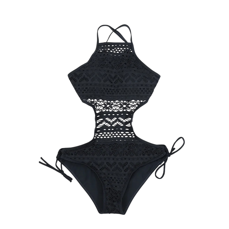 Damska enstyckade baddräkter Tunna axelband U-ringad Enfärgad Virkad Polyester Spandex Elegantiska sommarstrand baddräkter