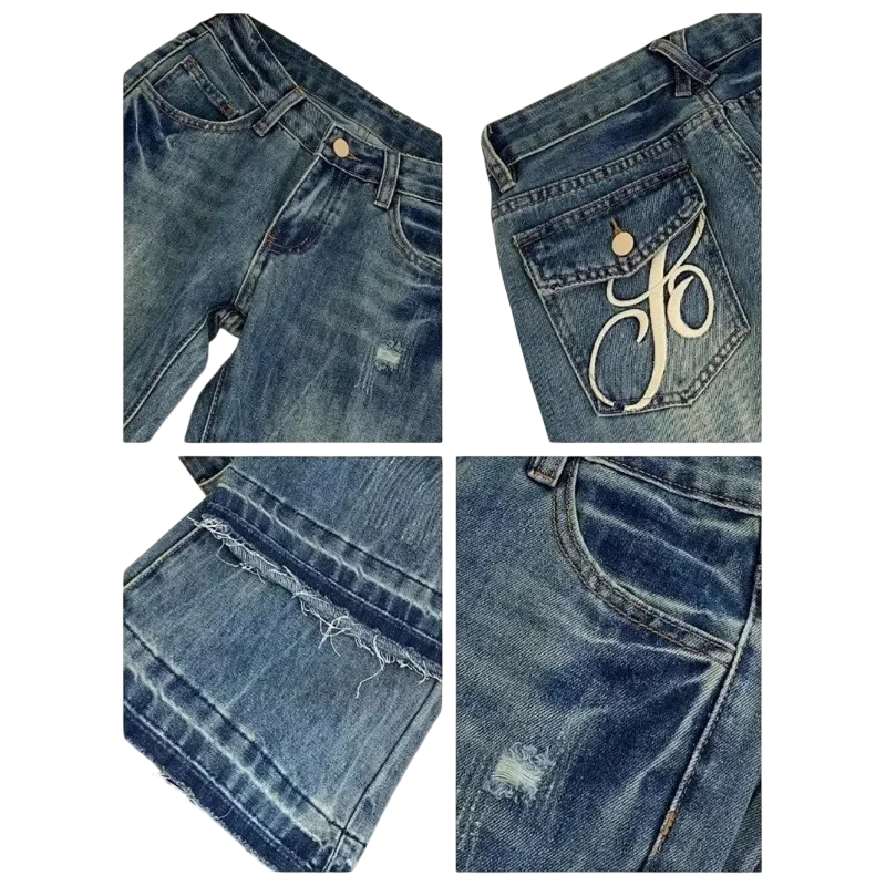 Startsida Startsida Kläder och accessoarer Damkläder Damjeans Damska jeans blå Enfärgad Text på bakfickor Fickor Polyester Moderna streetbyxor Trendig casual stil