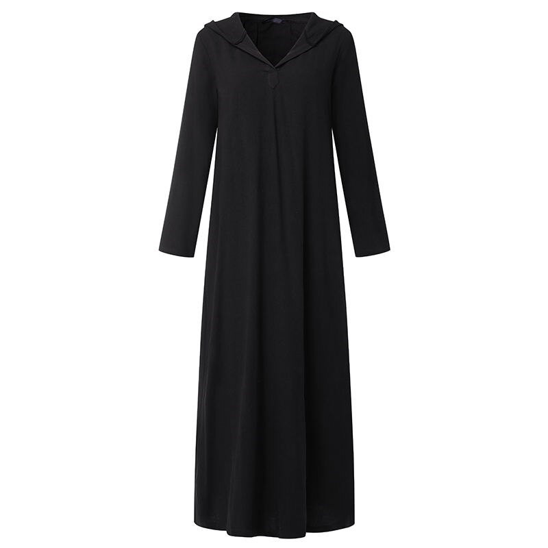 Bomullsmixad dam lång lös klänning med huva.