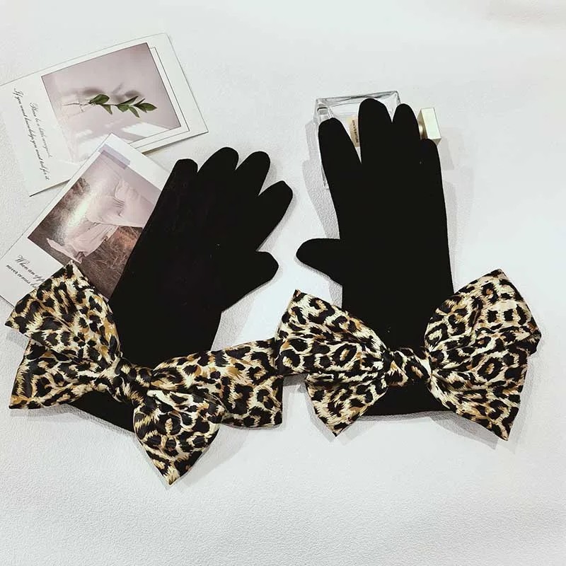 Damska stickade touchhandskar med rosett universell storlek Elegantiska vinterhandskar av polyester och elastan för kvinnor