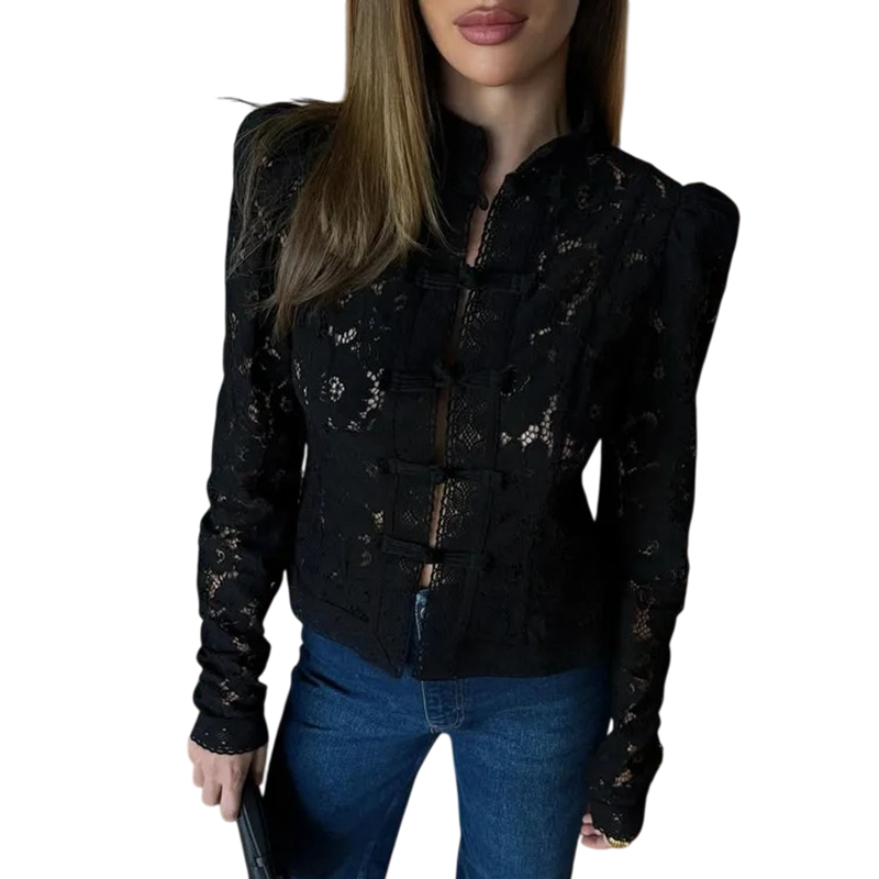 Denna modell är ett utmärkt val för kvinnor som söker en mångsidig bit till sin garderob. Skjortan anpassar sig lätt till olika stilar och tillfällen, oavsett om du kombinerar den med eleganta byxor eller en avslappnad kjol. Tack vare spetsen och knapparna framstår den som välvårdad och smakfull utan onödig uppvaktning. Den är idealisk för vardagligt bruk såväl som mer formella evenemang. Om du söker en kombination av elegans, komfort och praktiskhet, kommer denna bit att uppfylla dina förväntningar.