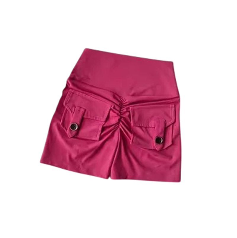 Bekväma enfärgade shorts med hög midja och fickor i elastiskt material, perfekta för sommaren, sport och vardagsbruk. Fullständig beskrivning