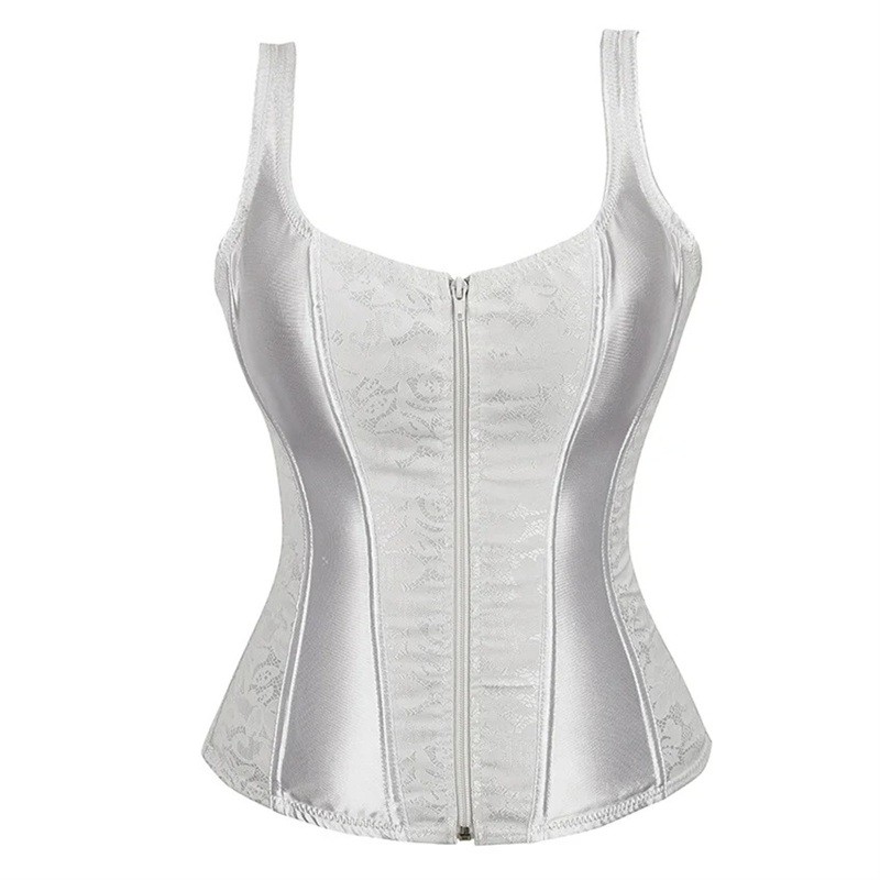Korsetet är tillverkat av en kvalitetskombination av polyester och spandex, som säkerställer elasticitet, hållbarhet och en behaglig känsla vid kontakt med huden. Materialet anpassar sig till kroppen och framhäver silhuetten utan att begränsa rörelsefriheten. Axelbanden ger stabilt stöd och ökar komforten vid hela dagens användning. Tack vare den genomtänkta snittet är modellen lämplig både för vardagligt bruk och för speciella tillfällen.
