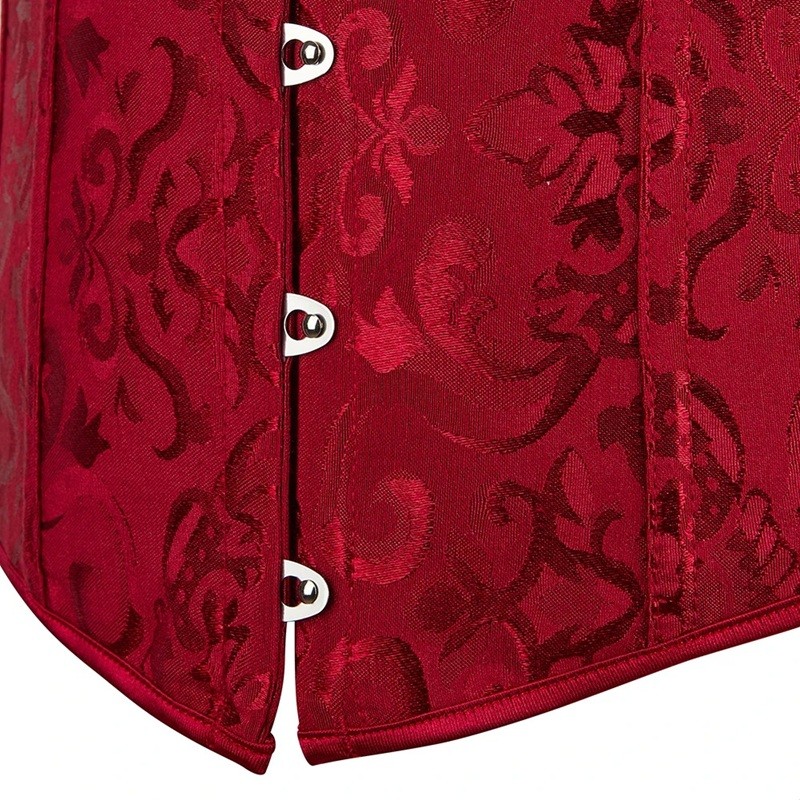 Enfärgad design ger en elegant och tidlös känsla, medan dekorativa mönster ger modellen en modern detalj. Tack vare den genomtänkta snittet hjälper att forma figuren och optiskt smalna midjan, vilket uppskattas av kvinnor som söker en framträdande och samtidigt smakfull modebit. Korsetten är lämplig för sociala evenemang, fester, temafester samt stiliga vardagskombinationer. Den passar utmärkt till byxor med hög midja, kjolar och eleganta kavajer.