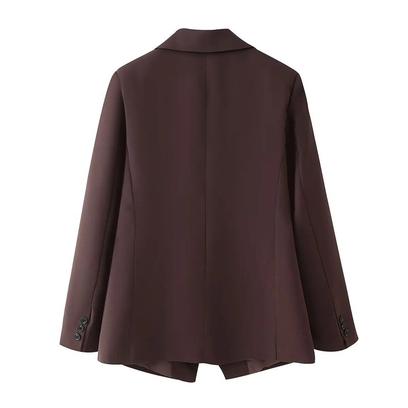 Detta damska bruna jacka är den perfekta kombinationen av elegans, komfort och tidlös stil. Tillverkat av högkvalitativ polyester material, ger det komfort vid användning och behåller sin form även efter långvarig användning. Tack vare kragen, praktiska fickor och knapplåsning ger jackan ett elegant och modernt intryck. Dess enfärgade bruna utförande är lätt att kombinera med olika outfits och passar alla kroppstyper. Perfekt för vardagsbruk, arbetsmöten och sociala tillfällen.