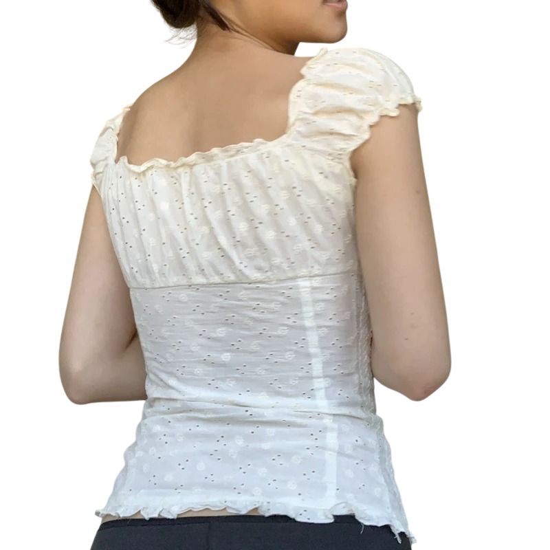 Damskt linne Vitt enfärgat med spetsar Knappstängning Breda axelband V-ringad Urringning Material polyester bomull Elegant topp