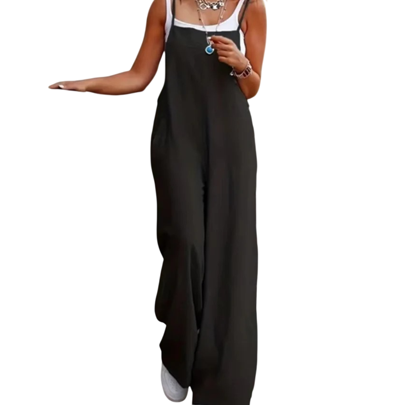 Startsida Startsida Kläder och accessoarer Damkläder Damoveraller Dam långa overaller Damsoverall Enfärgad Design Breda Byxor Tunna Remmar Lätt Polyester Sommaroutfit Löst Snitt Elegant Damkläder