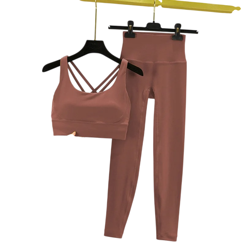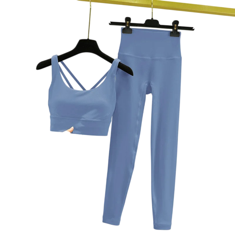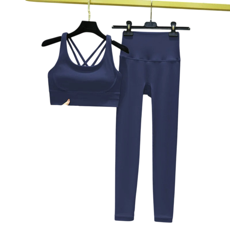 Damsset med leggings och sport-bh, enfärgad, spandex, nylon Detta damsset består av leggings och en sport-bh, idealisk för aktiva kvinnor som söker komfort och stöd under träning. Leggings och bh är tillverkade av en kombination av spandex och nylon, vilket säkerställer elasticitet, andningsförmåga och lång livslängd för setet. Den enfärgade designen är lätt att kombinera med andra plagg och passar för olika sportaktiviteter som löpning, yoga eller fitness. Detta set ger dig den nödvändiga rörelsefriheten och komforten, oavsett om du tränar eller bär det till vardags.