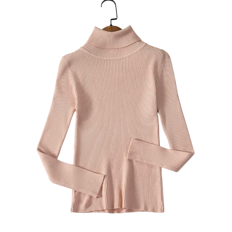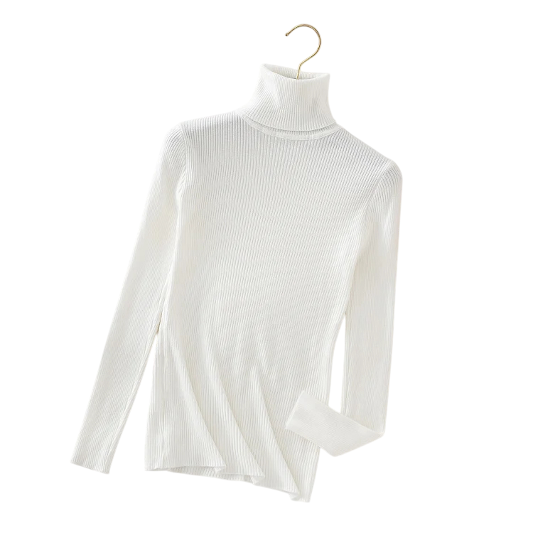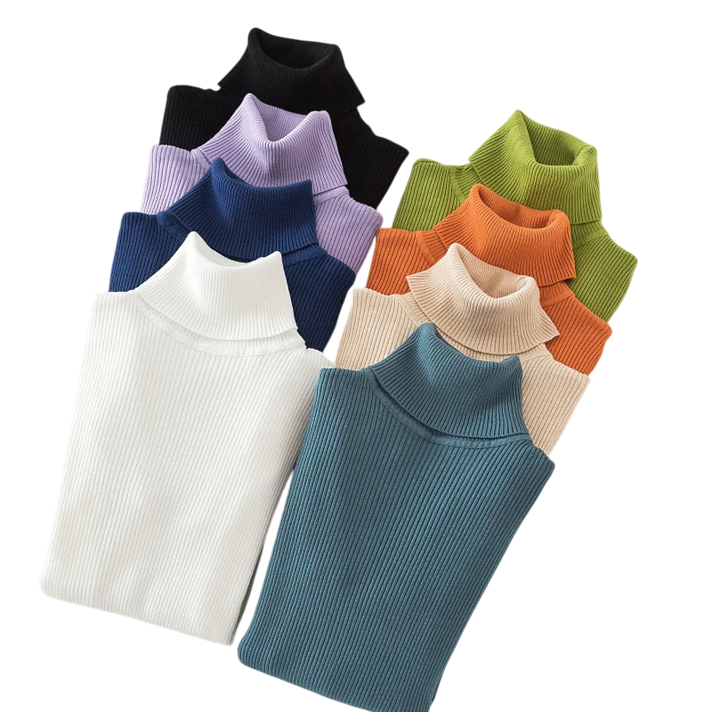 Damstickad tröja med rullkrage i bomull och akryl Enfärgad tröja med långa ärmar Universell storlek för höst och vinter