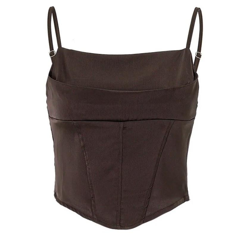 Damstopp enfärgad Rundad hals Tunn axelrem Polyester bomull Lätt bekväm topp för sommaren och lager-på-lager