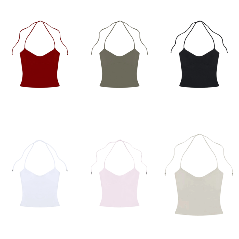 Startsida Startsida Kläder och accessoarer Damkläder Damlinnén Damstopp Enfärgad Tunn axelremmar runt halsen Rundad hals Crop top Material nylon spandex Modern sommartopp