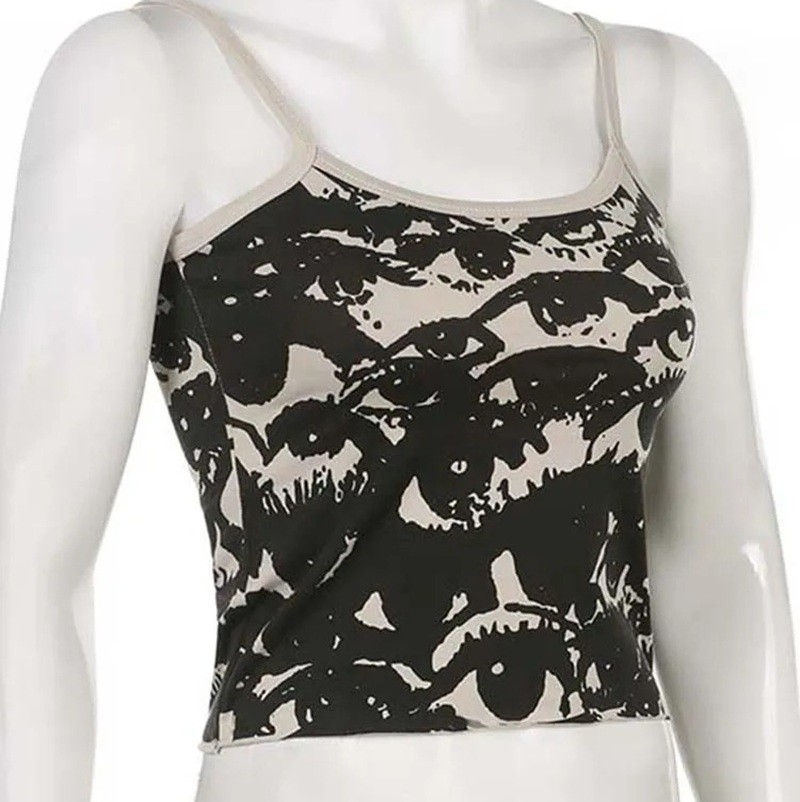 Damstopp Grå med ögontryck Tunn axelrem U-ringad Crop top Material polyester bomull Stilig topp