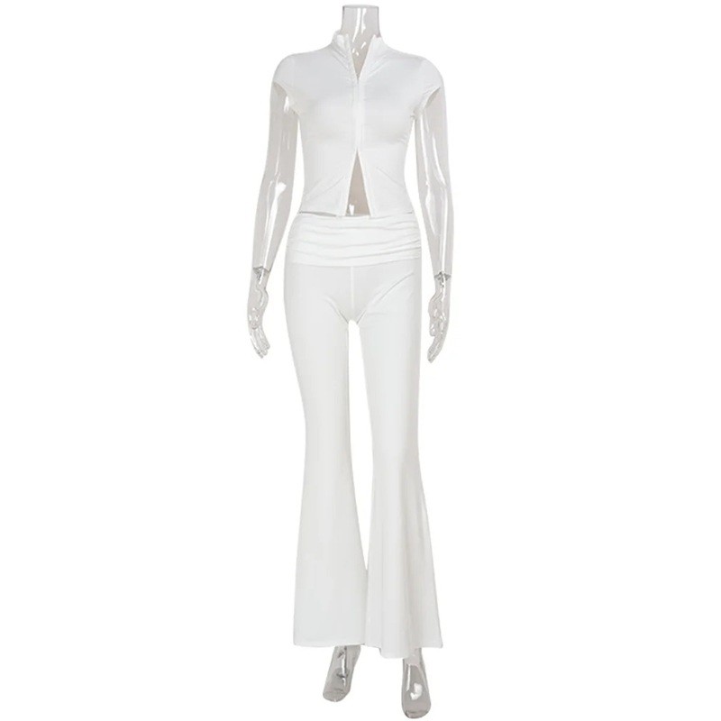 Denna damsuit är perfekt för varje kvinna som vill se stilren ut men samtidigt känna sig bekväm. Tröjan med utskärning i halsen ger hela looken en subtil elegans, medan byxorna i enkel enfärgad design är utmärkta för vardagliga kombinationer. Polyestermaterialet säkerställer att setet är bekvämt hela dagen och lätt att underhålla, vilket är utmärkt för en aktiv livsstil. Detta set är perfekt för varje tillfälle när du vill förbli elegant och samtidigt känna dig bekväm.
