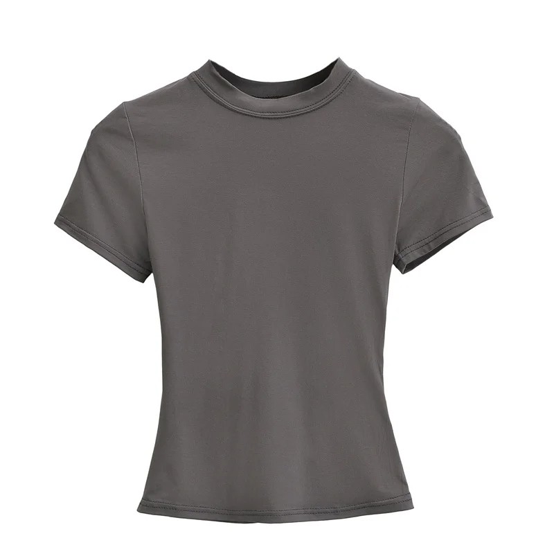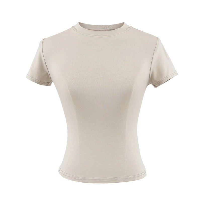 Damtröja med kort ärm Enkel rund halsringning Elegant resårtopp för vardagsbruk Modern t-shirt med smal passform