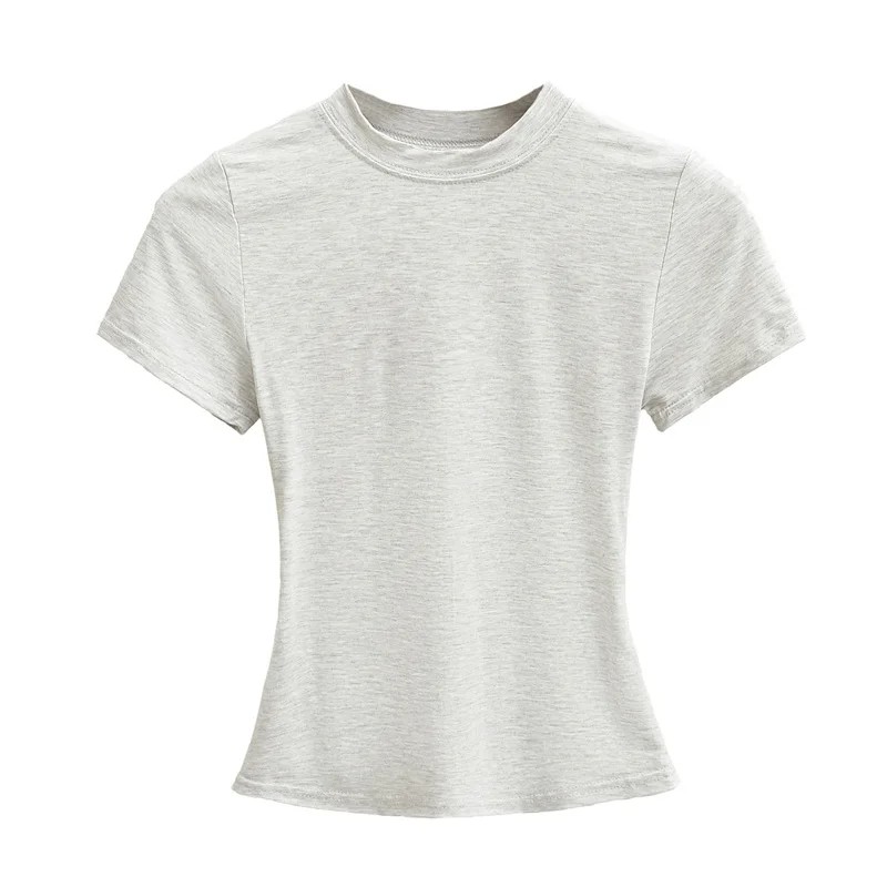 Startsida Startsida Kläder och accessoarer Damkläder Dam T-shirts och toppar Dam T-shirts och toppar med kort ärm Damtröja med kort ärm Enkel rund halsringning Elegant resårtopp för vardagsbruk Modern t-shirt med smal passform
