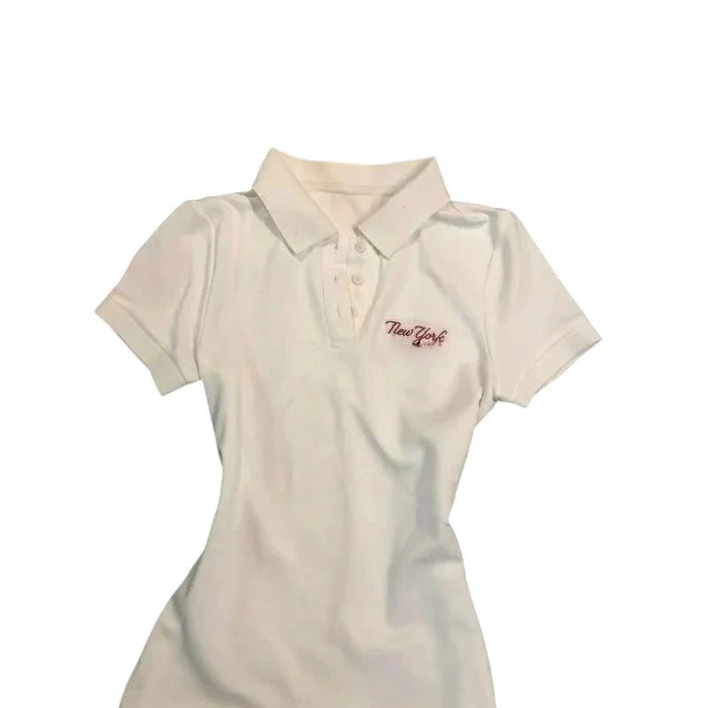 Damtröja med kort ärm Vit med texten New York V-ringning med krage och knappar Bomull med polyester stadströja