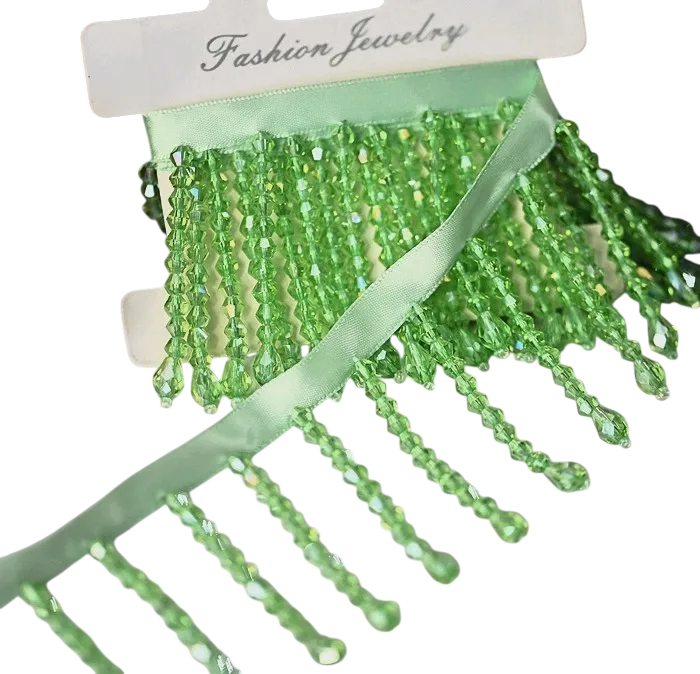 Dekorativ band med fransar är ett praktiskt och stilfullt tillbehör för alla som ägnar sig åt sömnad eller kreativt skapande. Tack vare det kvalitativa materialet är den hållbar och behåller samtidigt ett elegant utseende. Pärlfransarna skapar en mjuk rörelse som ger dekorationerna en attraktiv effekt.