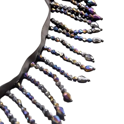 Dekorativ band med pärlfransar är ett elegant textiltillbehör som är lämpligt för olika kreativa projekt och dekorationer. Tack vare sin fina design ger den produkter en stilfull och lyxig look. Pärlfransarna skapar en intressant dekorativ effekt som passar utmärkt för dekoration av kläder, kostymer eller inredningstillbehör. Detta dekorativa band är det perfekta valet för alla som ägnar sig åt sömnad, hantverk eller dekoration.