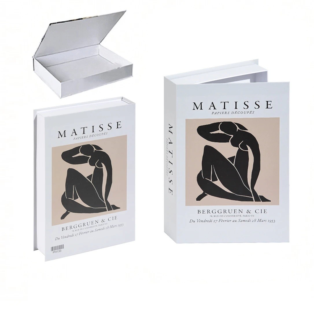 Denna eleganta falska bok är den perfekta detaljen för varje inredning som kräver lite originalitet och charm. Öppningsbar design möjliggör ett dolt förvaringsutrymme som du kan använda för småsaker som du vill gömma men ändå ha i sikte. Den dekorativa elementet, inspirerat av Henri Matisse, tillför sofistikering och konstnärlig känsla till varje rum.
