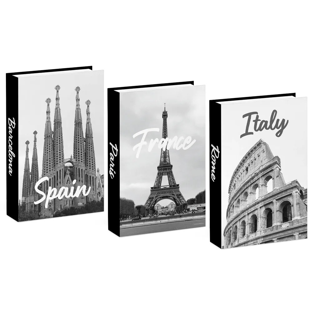 - Dekorativa falska böcker med motiv från Italien, Frankrike och Spanien