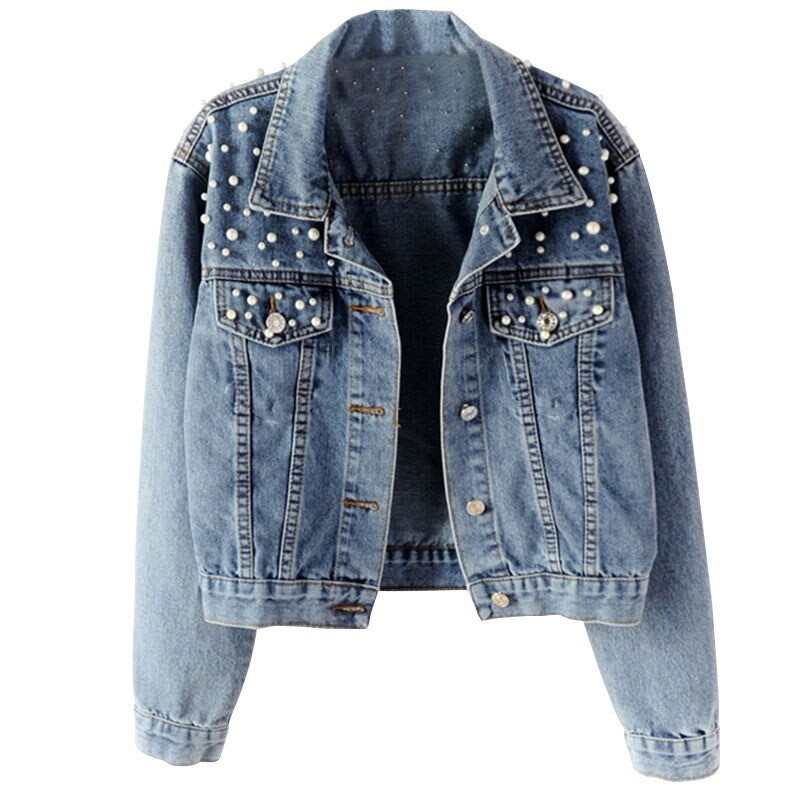 Denimjacka för kvinnor med pärlor