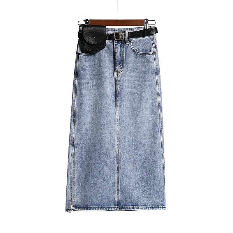 Denimkjol för kvinnor under knäet