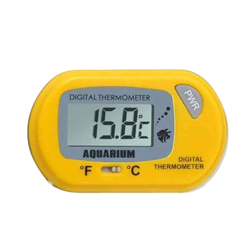 Denna elektroniska digitala termometer är avsedd för exakt mätning av vattentemperaturen i akvarier, terrarier, behållare med reptiler eller sköldpaddor. Den är utrustad med en vattentät sond som enkelt kan sänkas ner i vattnet, medan displayen hålls säkert utanför vattnet. På den läsbara LCD-displayen kan du enkelt följa den aktuella temperaturen med möjlighet att växla mellan Celsius och Fahrenheit. Termometern fungerar inom intervallet -50 °C till 70 °C och har en varningsfunktion – vid extrema värden visas indikationen „HC“ eller „LCn“. Strömförsörjningen sker med en vanlig 1,5V knappcell, som ingår i förpackningen.