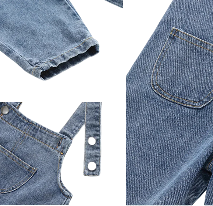 Djungelöverall för barn i denim av bomull Enfärgad overall för småbarn med ficka och knappar Stilig unisexoverall för pojkar och flickor
