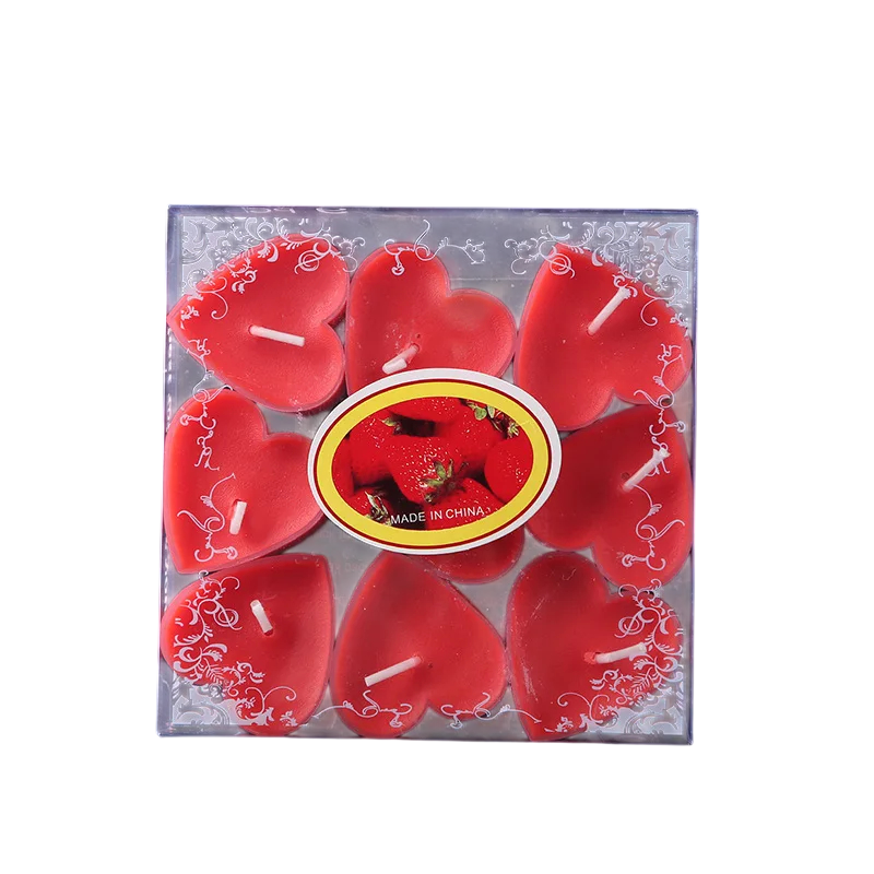 Doftande hjärtformade te-ljus dekorativt set 9 st 4 x 1,8 cm ljus för bröllopsdekoration och romantiska tillfällen