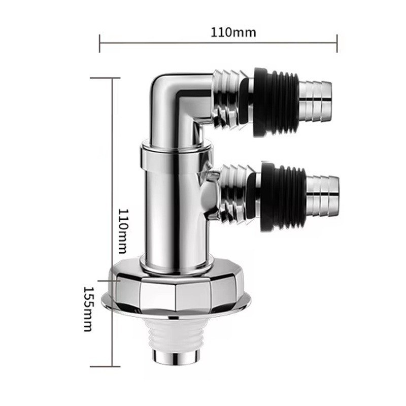 Kopplingen är universell och kompatibel med de flesta standard golvavlopp, lämplig för köks- och badrumsinstallationer. Den starka tätmekanismen tillsammans med den förkromade ytan säkerställer en säker tätning av de anslutna slangarna, vilket förhindrar läckage av vatten och lukt. Produkten är ett praktiskt komplement till hemmets avloppssystem, ger pålitlig vattenavledning och en hygienisk miljö.