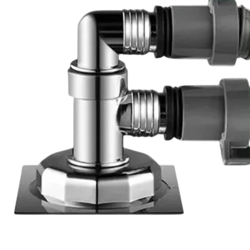 Denna dubbla roterande T-koppling för golvavlopp för tvättmaskin är designad för säker och pålitlig anslutning av avloppsslangar från tvättmaskin, diskmaskin eller avfallskvarn direkt till golvavloppet. Tack vare den förkromade ytan är kopplingen motståndskraftig mot korrosion och mekaniskt slitage, vilket säkerställer lång livslängd och ett modernt utseende. Den roterande mekanismen möjliggör flexibel placering av slangarna och stödjer gravitationstvättning, så att avloppsvattnet effektivt leds bort till avloppssystemet utan bakflöde.