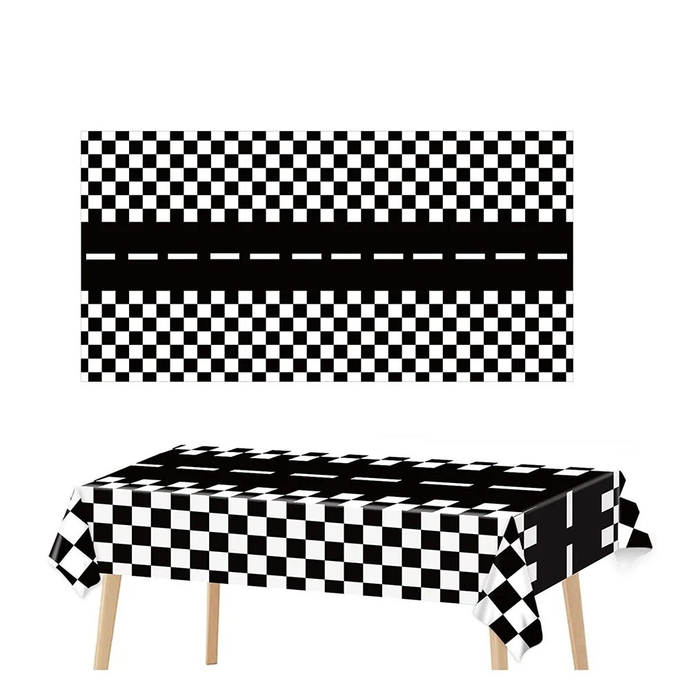 Duk 137 x 274 cm Racing rutmönster med väg i mitten Partydynka för barnkalas racing dekorationer för bord