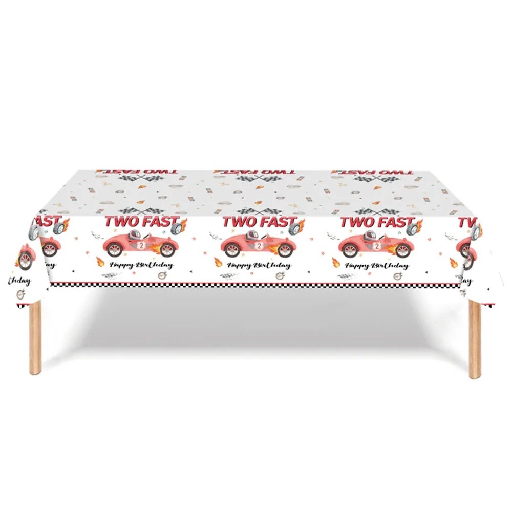 Duk 137 x 274 cm Two Fast Röd racingbil Party duk för barnkalas racing dekorationer till bordet