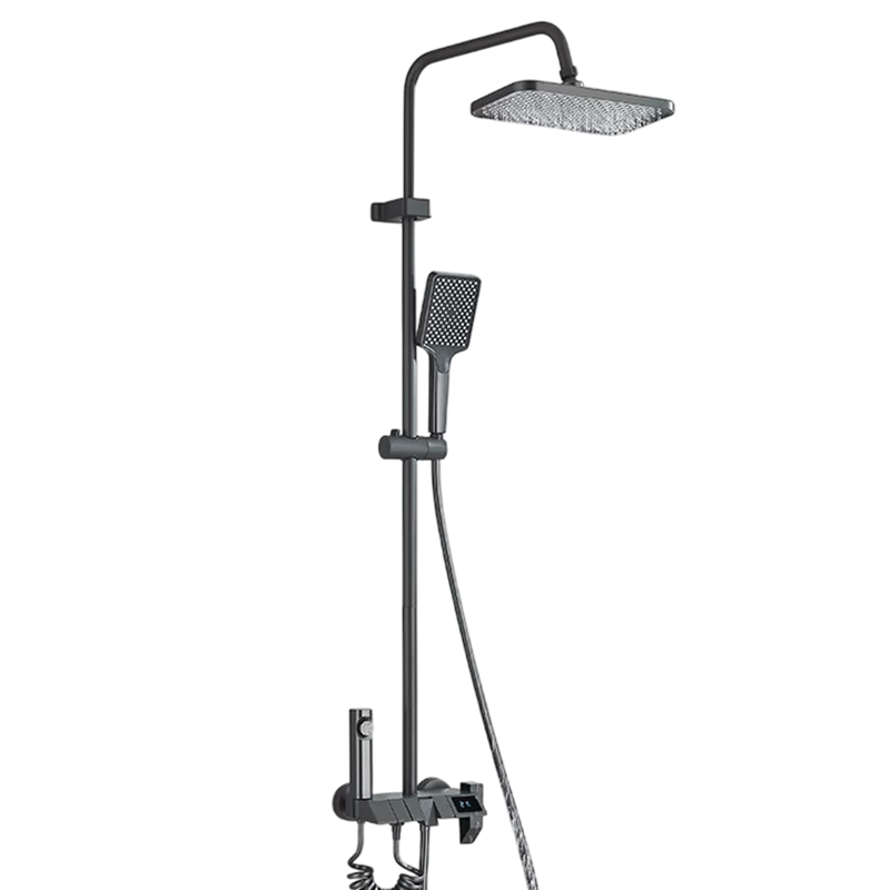 Modern duschsystem med digital skärm för exakt temperaturinställning. Erbjuder regndusch och handdusch, högtrycks bidet och elegant design för badrummet. Fullständig beskrivning