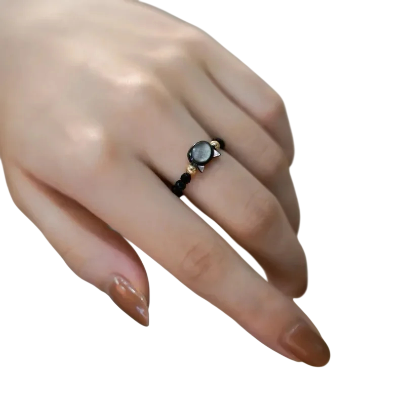 Stilig handgjord ring av små pärlor med söt kattmotiv. Lätt och bekväm design som passar för vardagsbruk. Fullständig beskrivning