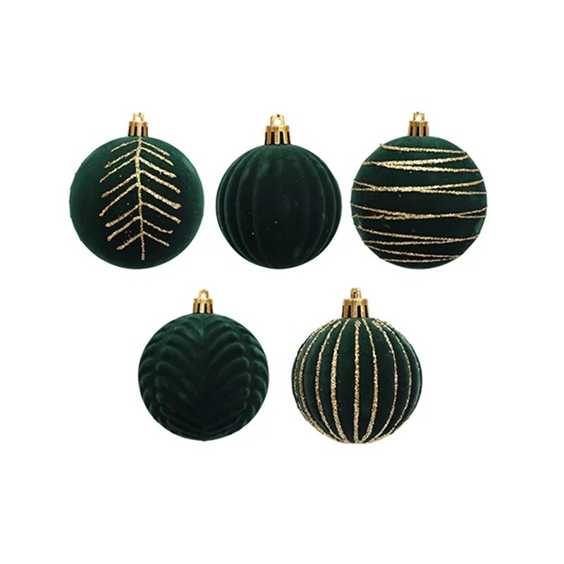 Julkulor med fem olika mönster skapar en elegant och enhetlig dekoration. Stilren design, idealisk för julgranen och andra dekorationer. Fullständig beskrivning