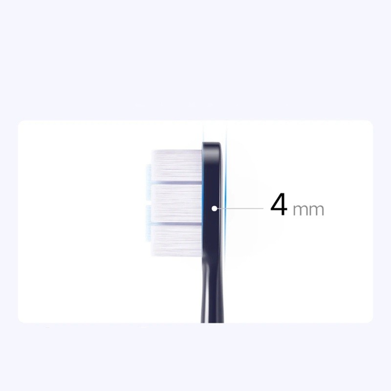 En stor fördel är det ultratunna borsthuvudet med en tjocklek av 4 mm, som enkelt når även svåråtkomliga ställen i munhålan. Den speciella borstarrangemanget i M-form säkerställer bättre kontakt med tänderna och effektivare rengöring vid varje rörelse av tandborsten.