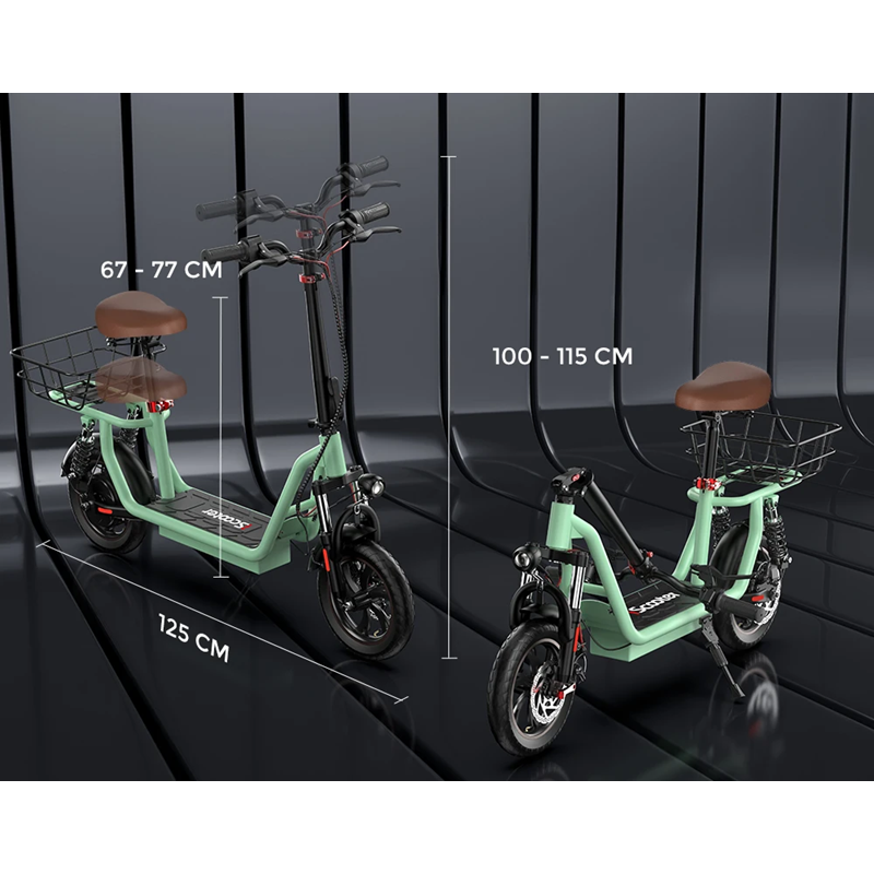 Elektrisk sparkcykel med säte 500 W med korg och dubbel fjädring 36 V 7,5 Ah batteri räckvidd 35 km max 25 km/h 120 kg