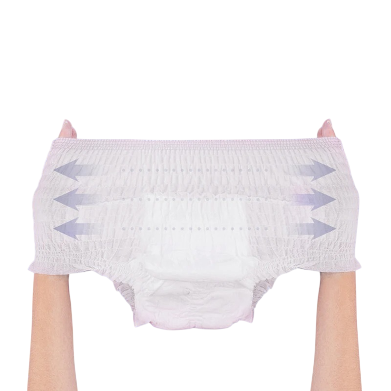 Det handlar om menstruationsunderkläder avsedda för engångsanvändning, som är utformade för praktisk och hygienisk användning under menstruation. Konstruktionen påminner om klassiska underkläder, vilket gör att trosorna är lätta att ta på och anpassar sig efter kroppens form. På bilden syns den enkla snittet och det elastiska midjebandet som hjälper till att hålla trosorna på plats.
