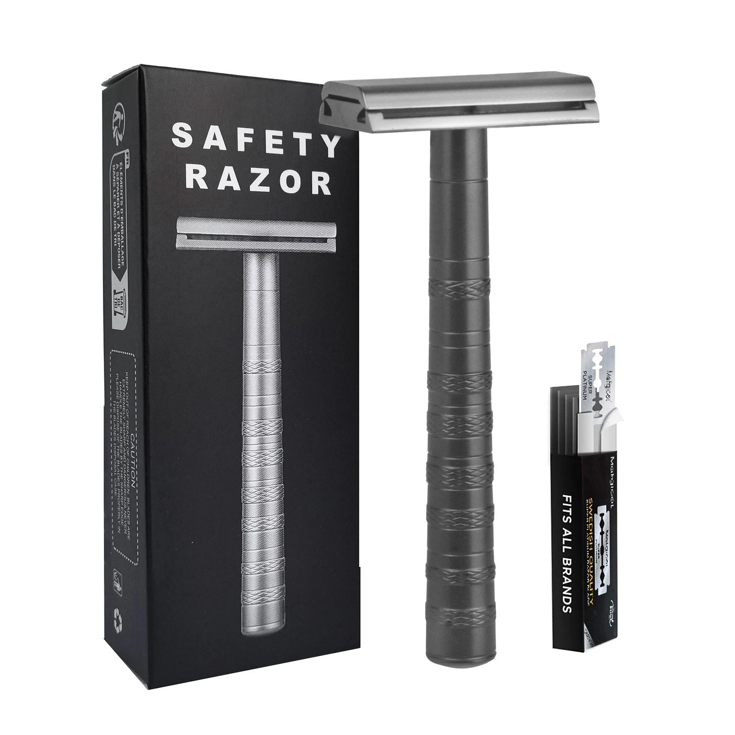 Enkelbladig rakhyvel 10,5 x 4,4 cm Aluminiumlegering 5 ersättningsblad Manuell säkerhetsrakhyvel för män och kvinnor