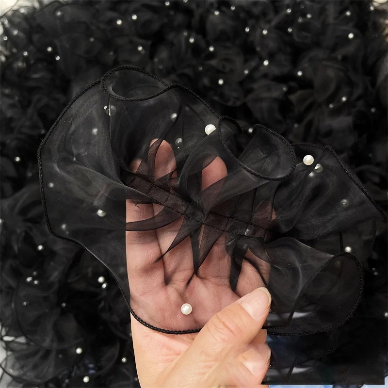 Elegant Fållad spets med volanger är idealisk för dekoration av kläder, kostymer, heminredning och kreativa DIY-projekt. Fullständig beskrivning