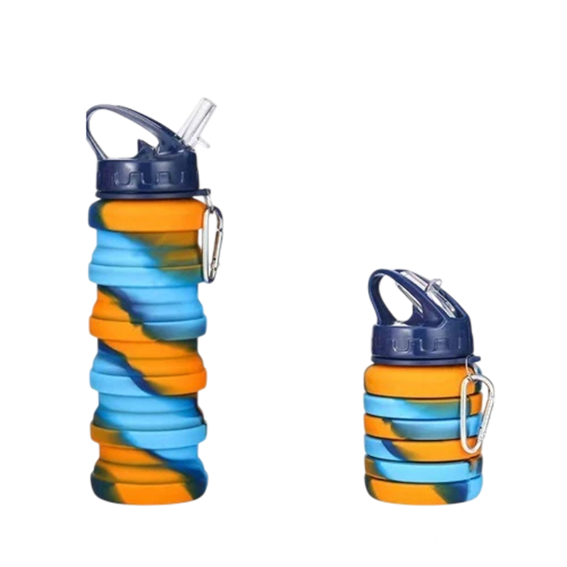 Flaskan är tillverkad av silikon, vilket är flexibelt och gör det möjligt att komprimera eller fälla ihop den. Silikonmaterialet gör att flaskan enkelt kan fällas ihop efter att drycken har druckits, vilket avsevärt minskar dess storlek. Därför passar den bra i en ryggsäck, väska eller reseutrustning.