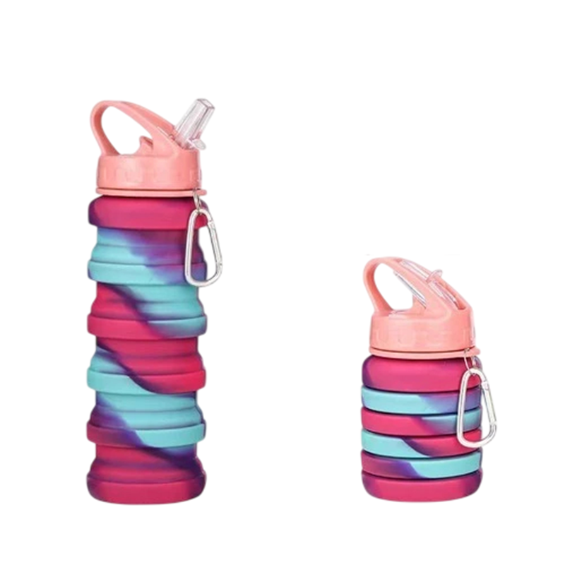 Fällbar silikonflaska med sugrör och karbinhake 500 ml Fällbar silikonflaska för vatten flerfärgad reseflaska