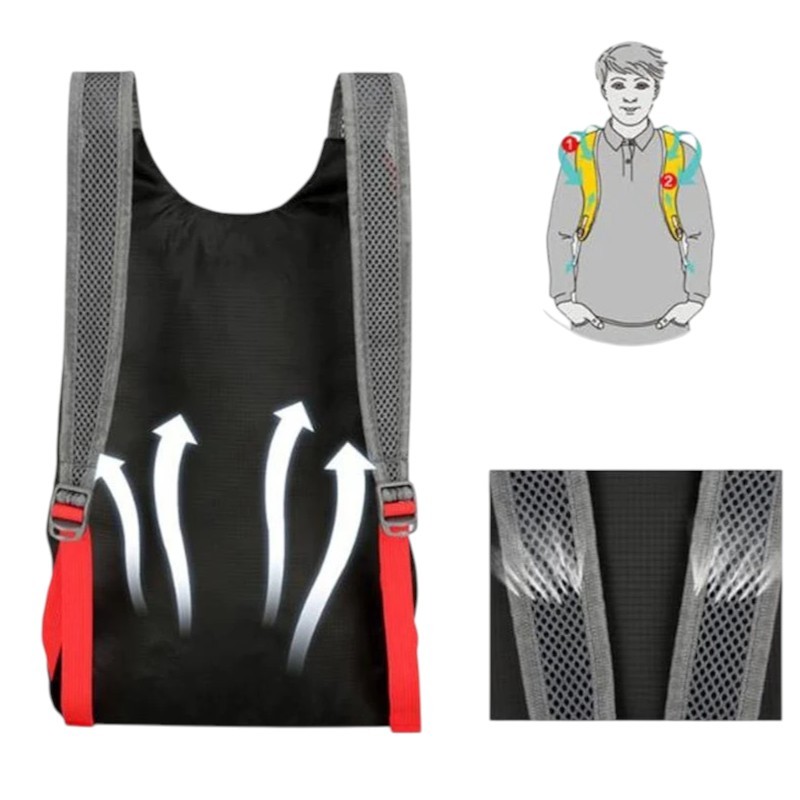 Lätt fällbar ryggsäck med stor kapacitet 20 l, lämplig för vandring, resor och camping. Vattentåligt material, praktiska fickor och enkel hopfällning. Fullständig beskrivning