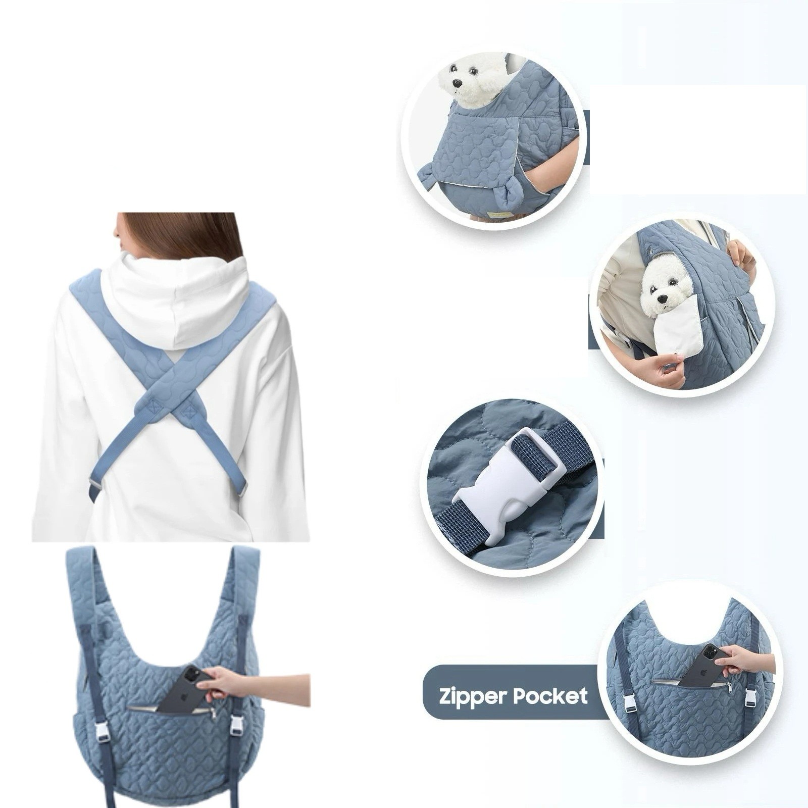 Letar du efter ett praktiskt och stiligt sätt att transportera ditt husdjur? Denna mjuka bärväska låter dig bära katten eller en mindre hund bekvämt på bröstet. Den är perfekt för utomhuspromenader, shopping eller resor när du vill ha ditt husdjur nära. Tack vare det ventilerande materialet säkerställs komfort även i varmare väder. Den vattentäta behandlingen skyddar dessutom mot vind och regn.