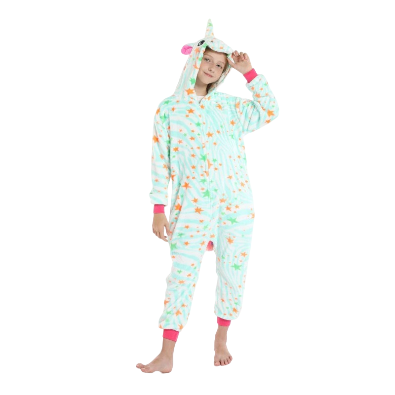 Den färgglada unicorn jumpsuiten är gjord av mjukt och varmt polyestermaterial , så ditt barn kommer säkert att känna sig bekvämt i den. Den söta designen kommer säkerligen att bli en hit bland små barn (och vuxna!). Oavsett om du letar efter en Halloween-kostym eller bara en rolig och unik outfit, är denna jumpsuit ett utmärkt val.