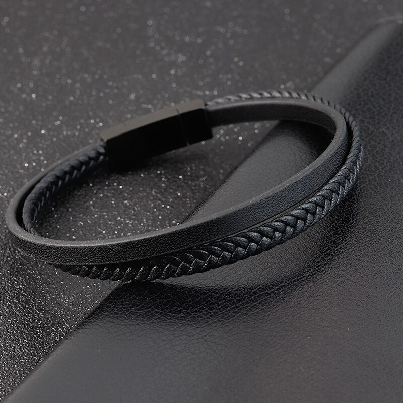Flätat läderarmband för män