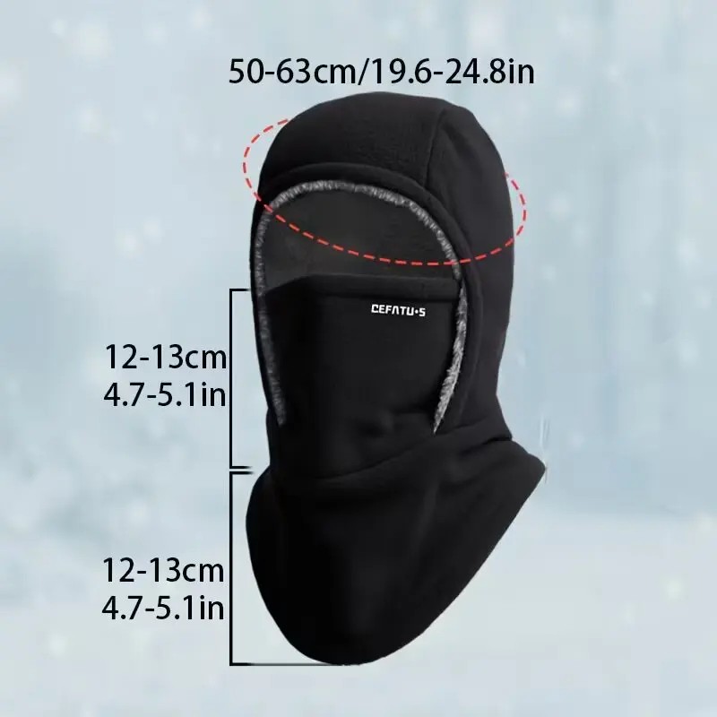 Materialvalet lägger vikt vid vindskydd, vilket hjälper till att begränsa obehagligt drag och skydda känsliga delar av ansiktet. Fleece-strukturen är mjuk, följsam och anpassningsbar, så huvan sitter bra på huvudet utan obehagligt tryck. Universell design möjliggör bred användning utan komplicerad storleksjustering. Huvan är lätt att ta på och av och är lämplig för kortare såväl som längre vistelser utomhus. Tack vare sin design täcker den både huvudet och nacken och bidrar till bättre komfort vid rörelse.